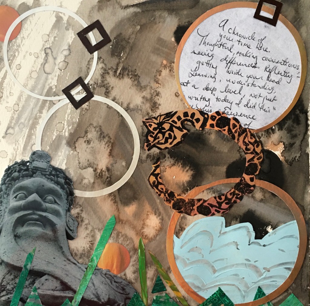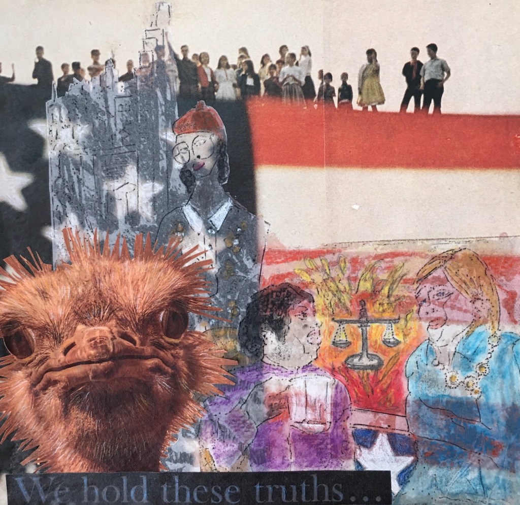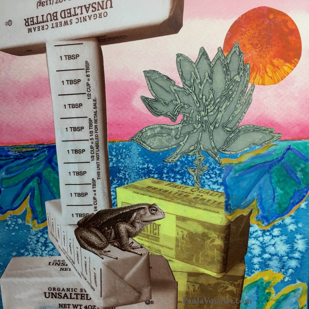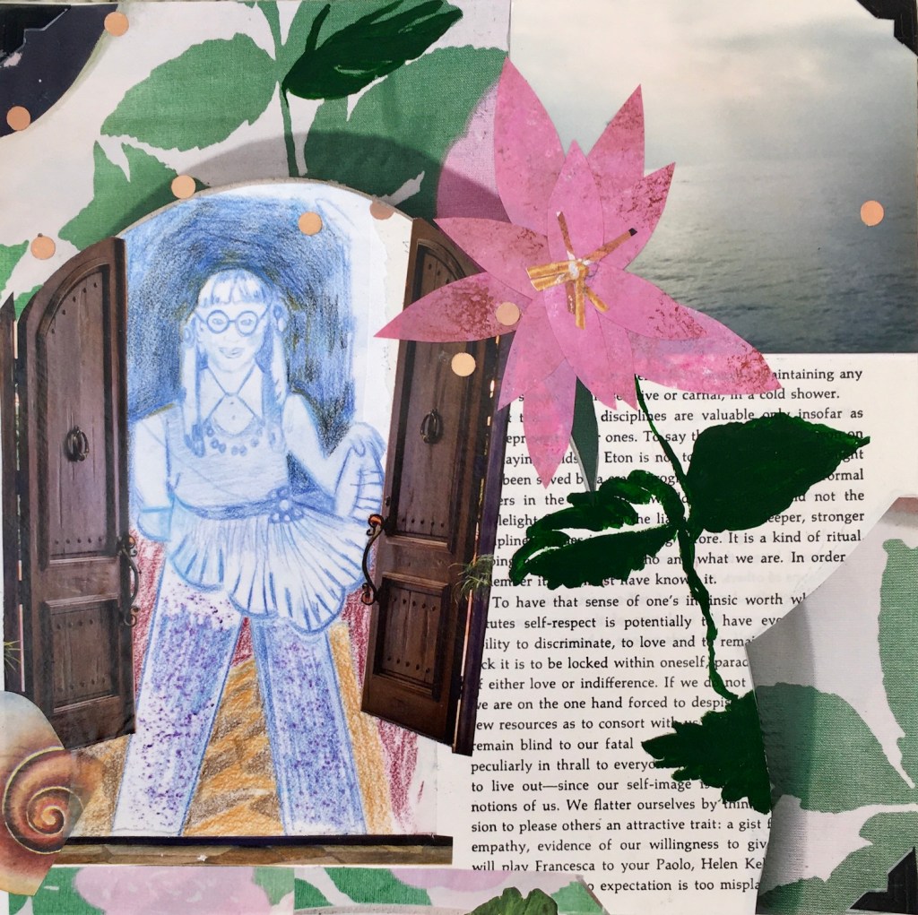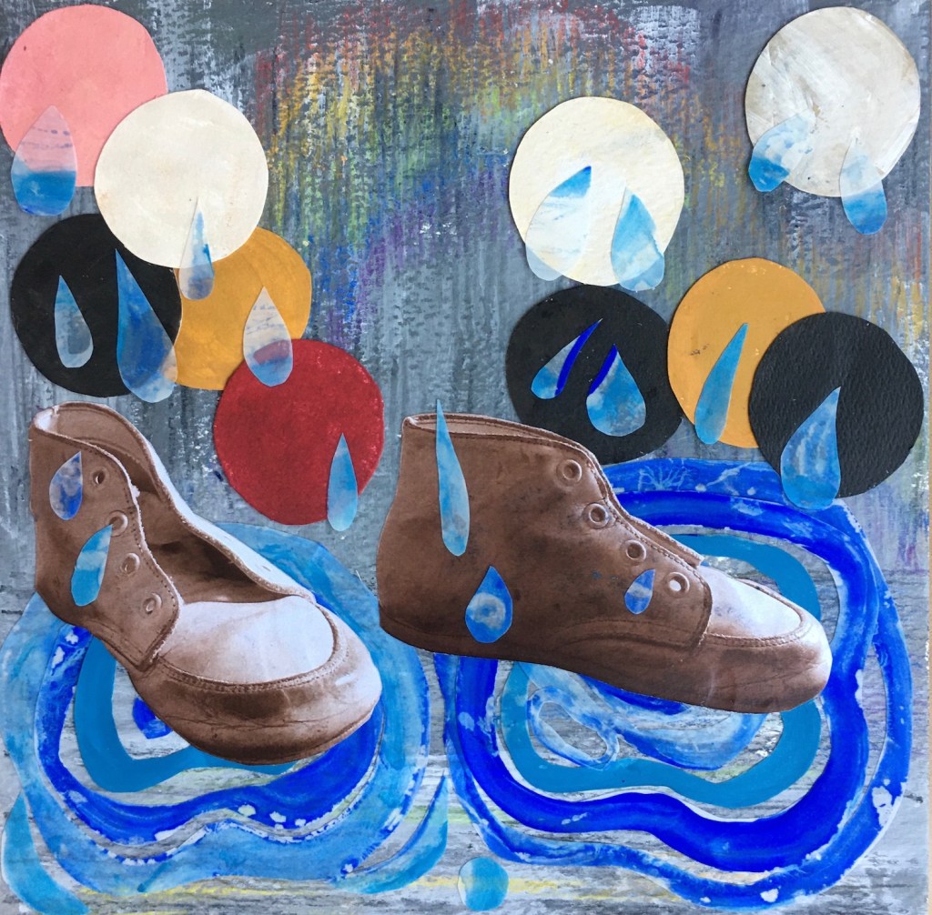 My access to a printing press for printmaking was closed. Inspired by Rauschenberg and Matisse I began to experiment with various mediums and methods: glue, cutting images from magazines, listening to music lyrics and poetry, reading scientific articles, and painting mystery and beauty onto skulls. I made my first mixed media collage for myself- art therapy. I didn’t intend to share it with others. It turns out “others” inspired every effort. Thank you. Thank you for waving hello and for crossing the street and giving space. Thank you for sharing information, inspiration and hope.