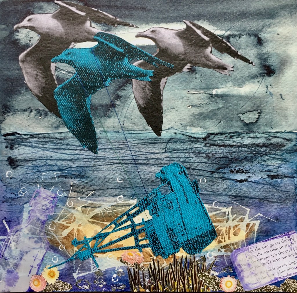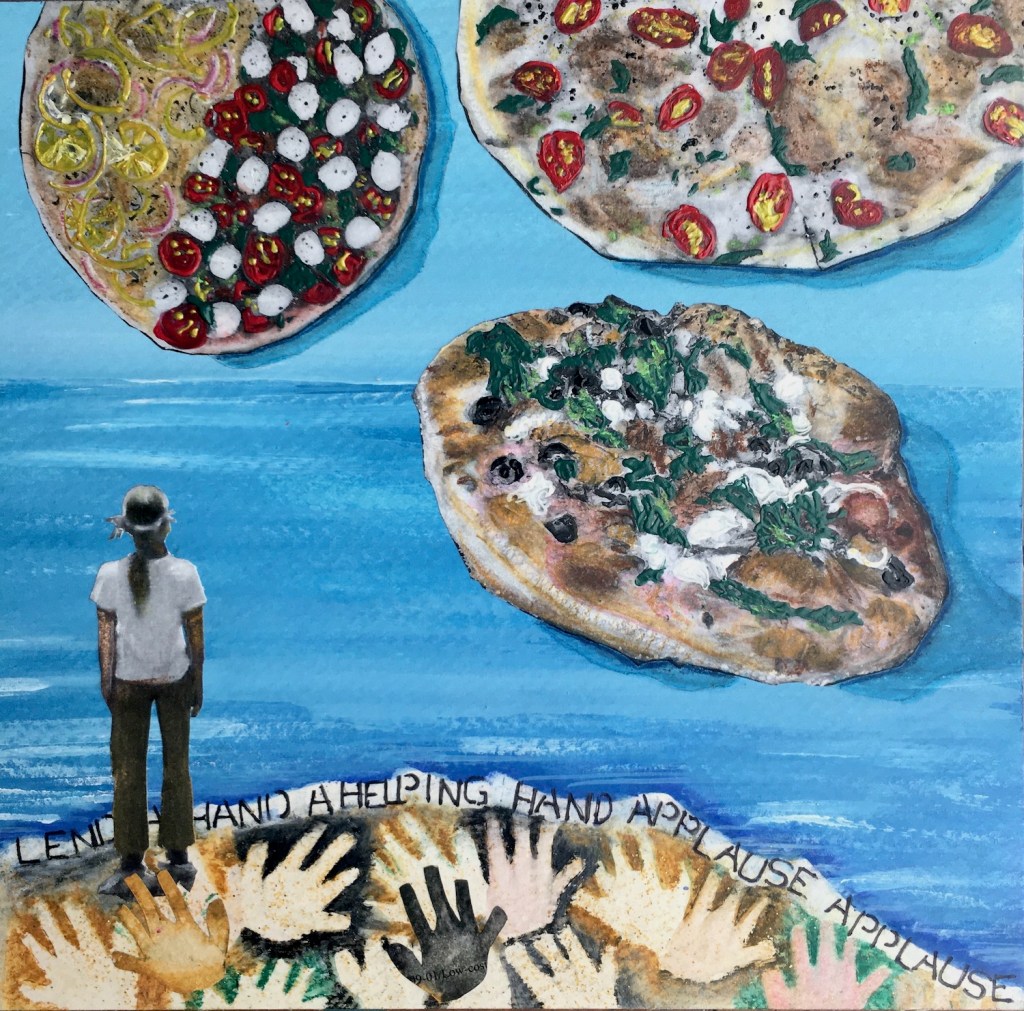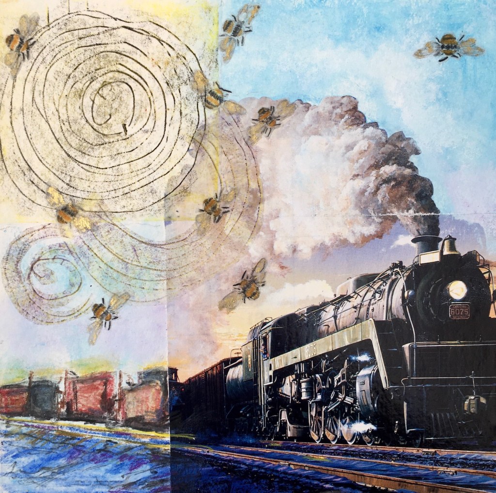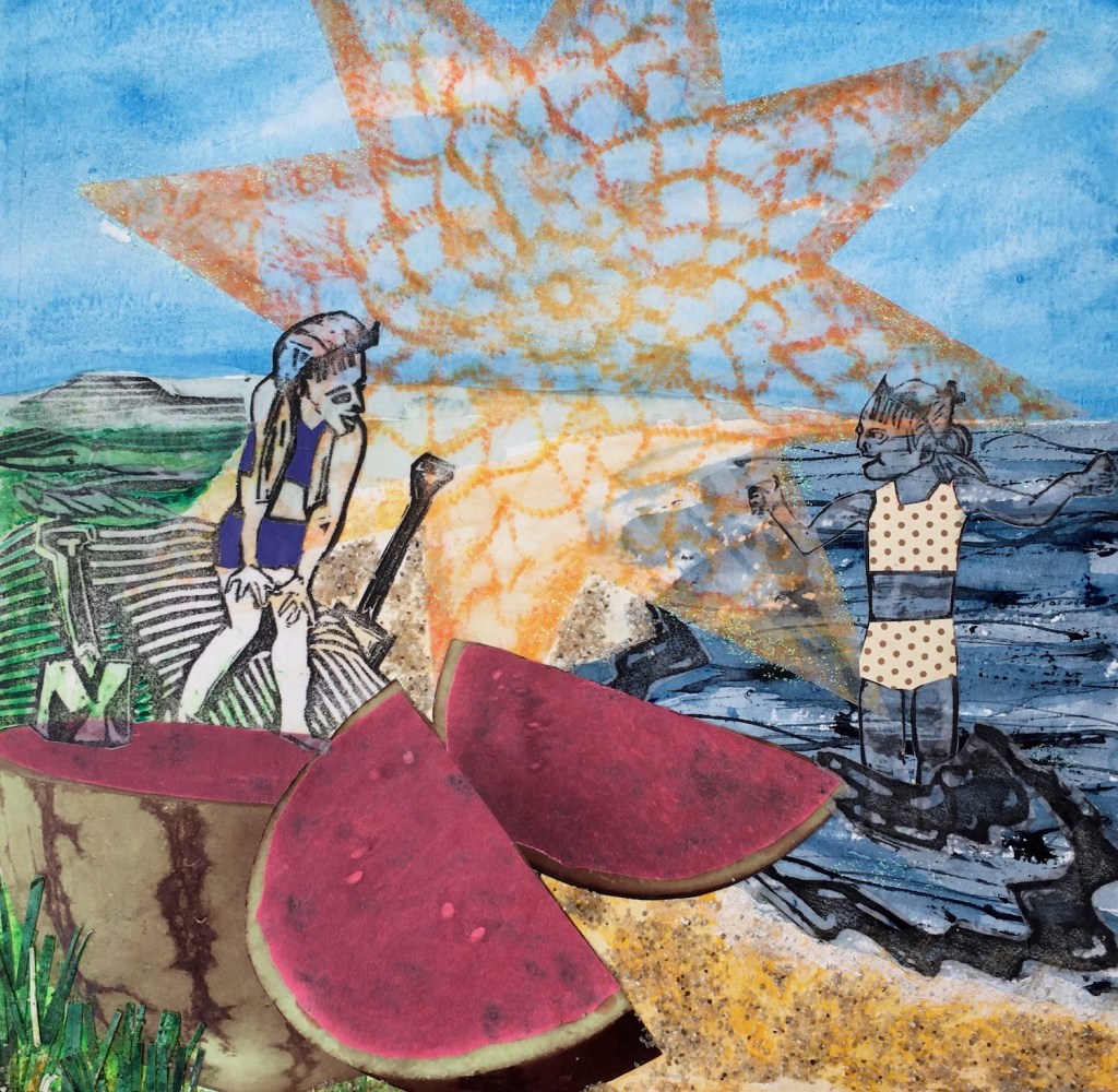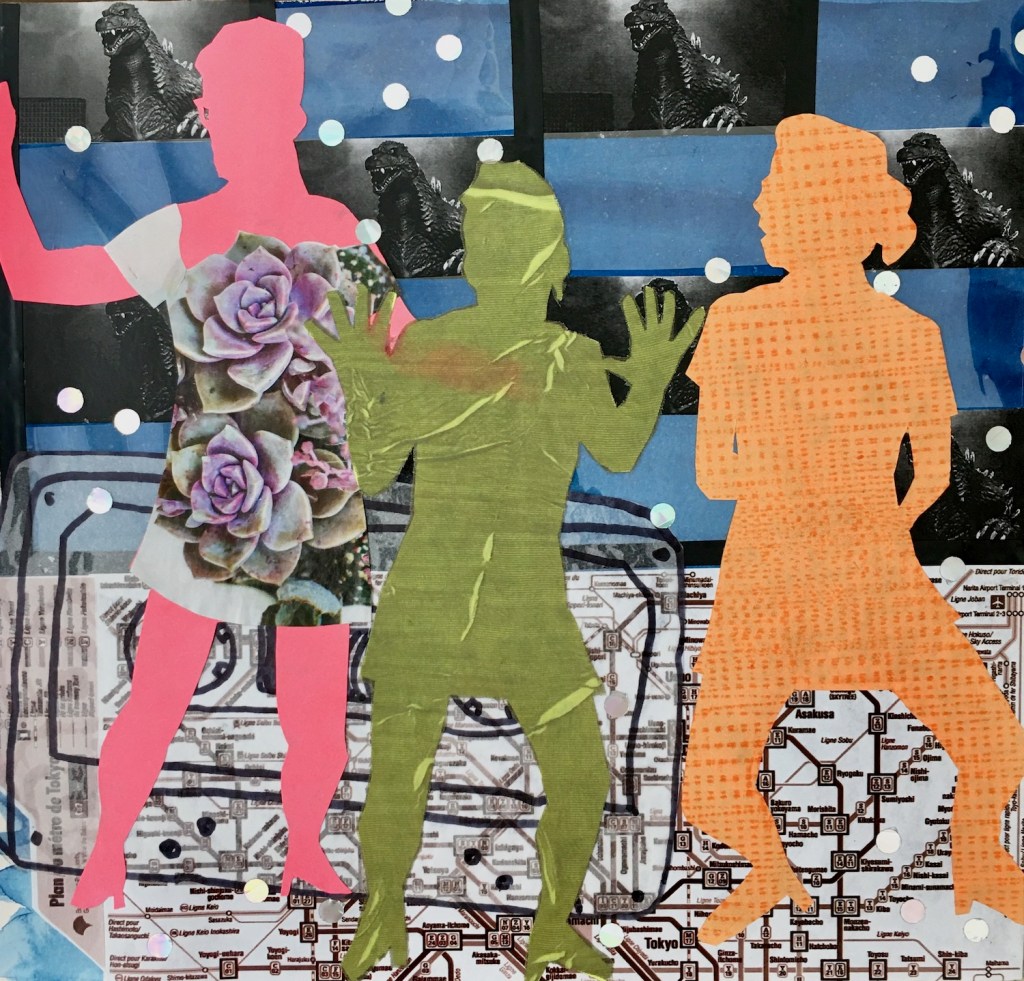 My access to a printing press for printmaking was closed. Inspired by Rauschenberg and Matisse I began to experiment with various mediums and methods: glue, cutting images from magazines, listening to music lyrics and poetry, reading scientific articles, and painting mystery and beauty onto skulls. I made my first mixed media collage for myself- art therapy. I didn’t intend to share it with others. It turns out “others” inspired every effort. Thank you. Thank you for waving hello and for crossing the street and giving space. Thank you for sharing information, inspiration and hope.